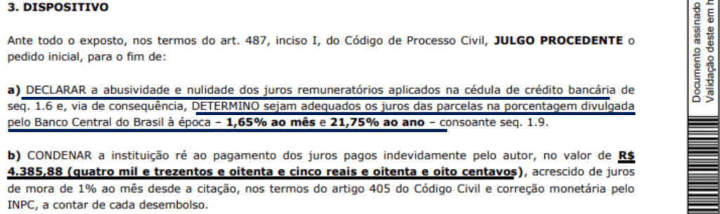 Embora não haja uma tabela específica a ser seguida, isso não confere aos bancos a liberdade de estipular taxas exorbitantes à sua vontade. Todos os meses, milhares de contratos são revisados. Esse processo ocorre porque o judiciário compreende que, quando a taxa aplicada ao contrato é consideravelmente superior à média do mercado, sua revisão e redução são justificáveis. Além disso, reforça-se o direito do consumidor de ser ressarcido por todos os valores que tenham sido cobrados de forma indevida.